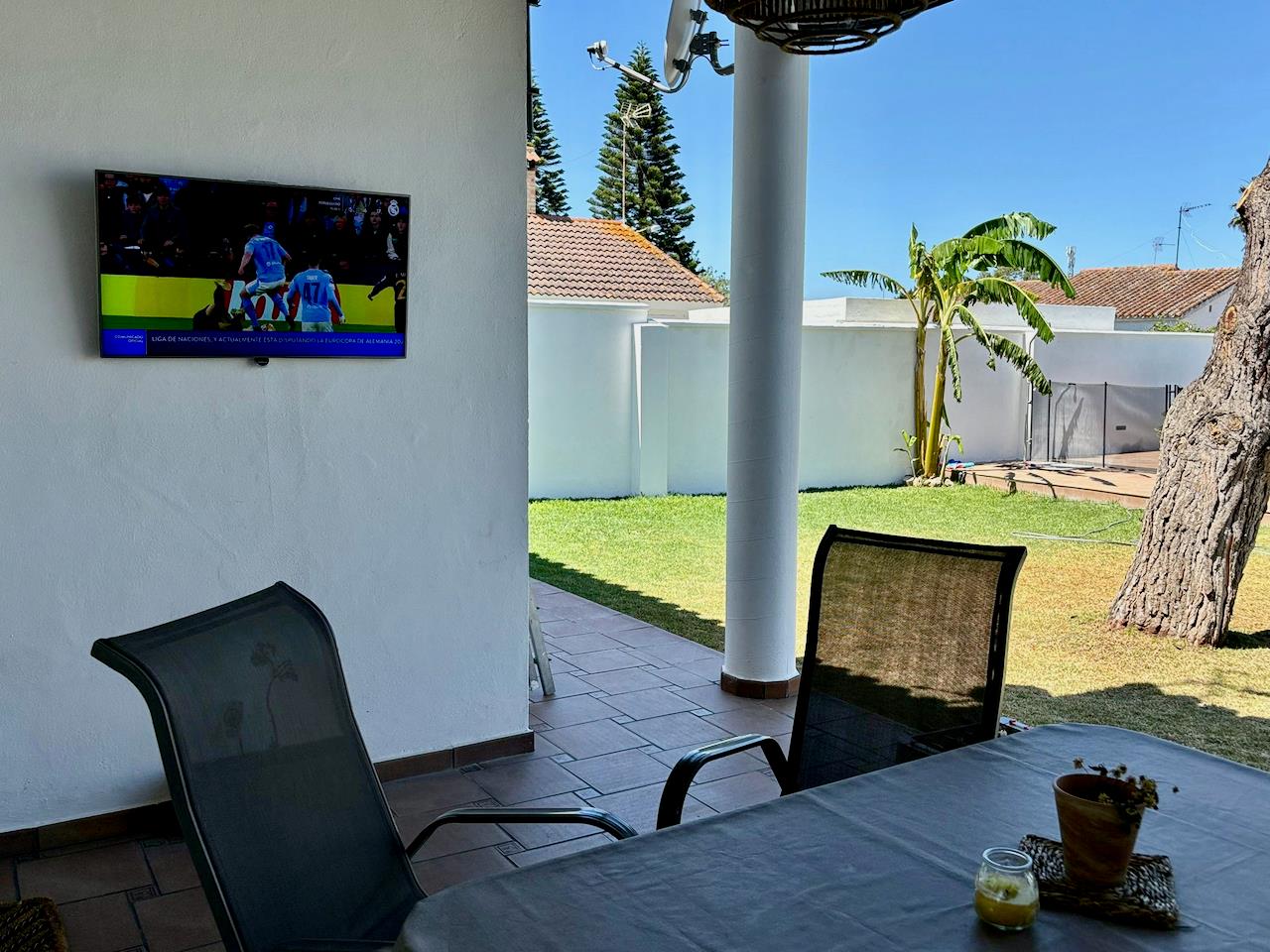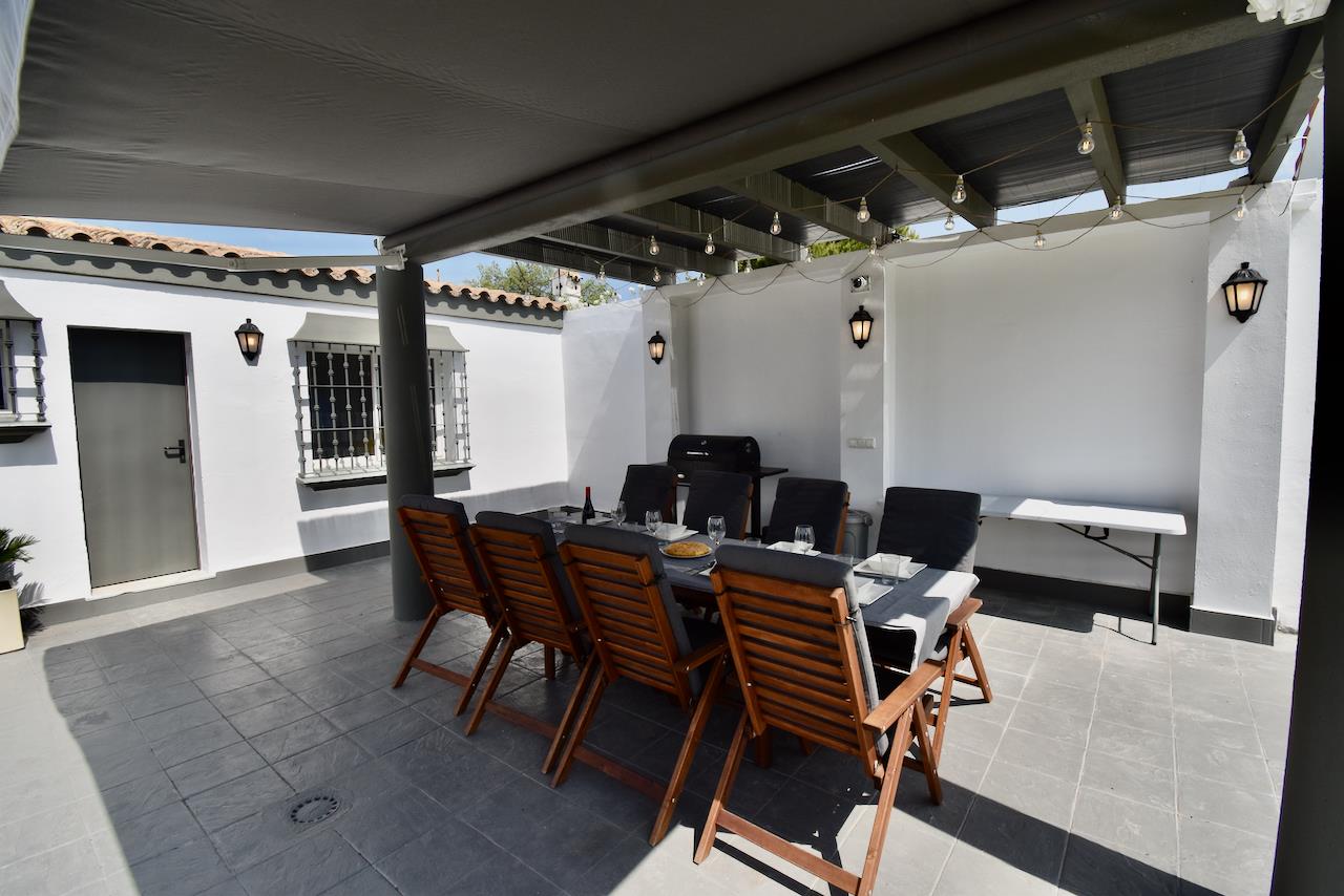 La villa cuenta con 3 dormitorios y 3 baños, distribuidos entre el alojamiento principal y una casa de jardín. El alojamiento ofrece mucha privacidad, un maravilloso jardín con césped y árboles, y una encantadora piscina. Su comodidad y la proximidad a la playa, áreas comerciales, actividades deportivas, instalaciones de entretenimiento, vida nocturna, monumentos y cultura hacen de esta villa un lugar ideal para pasar sus vacaciones en España con familia o amigos.