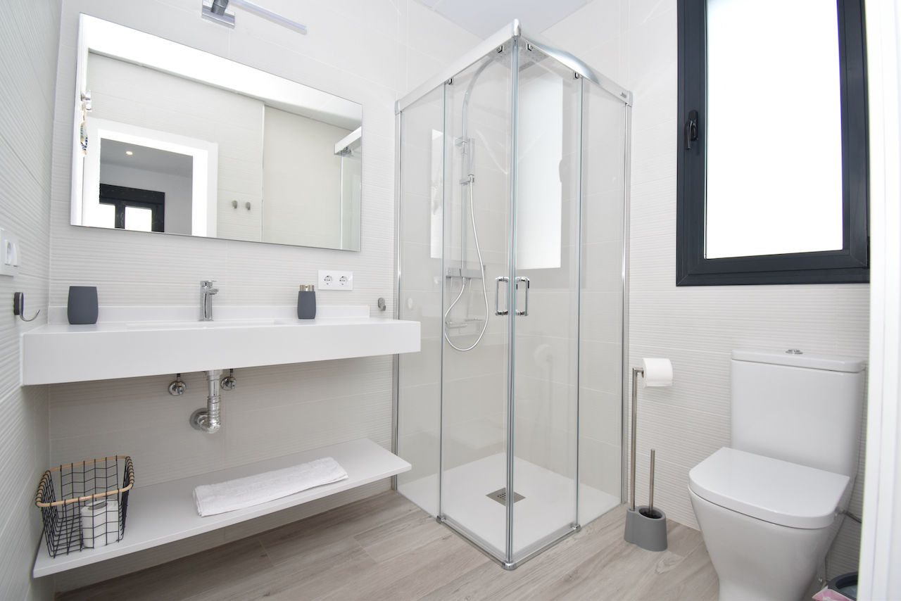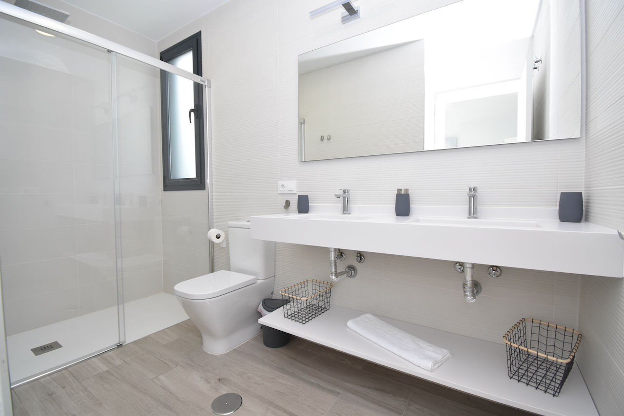 • 4 cuarto de baño en suite, cada uno con lavabo, ducha y váter