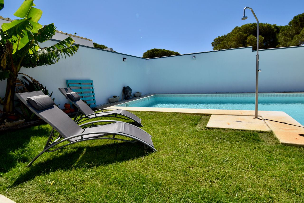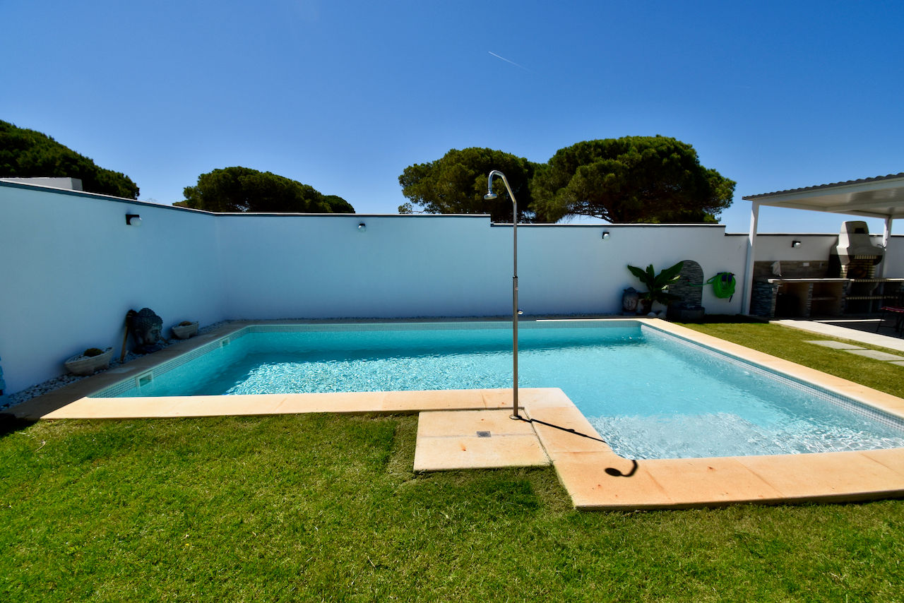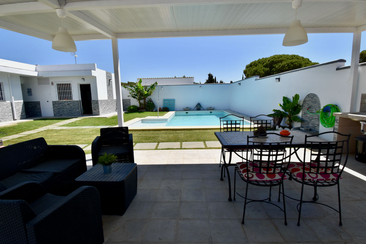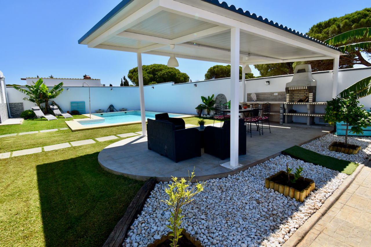 Villa moderna y acogedora en Chiclana de la Frontera, Costa de la Luz, España con piscina privada para 5 personas. La casa está situada en una zona de playa y rural.