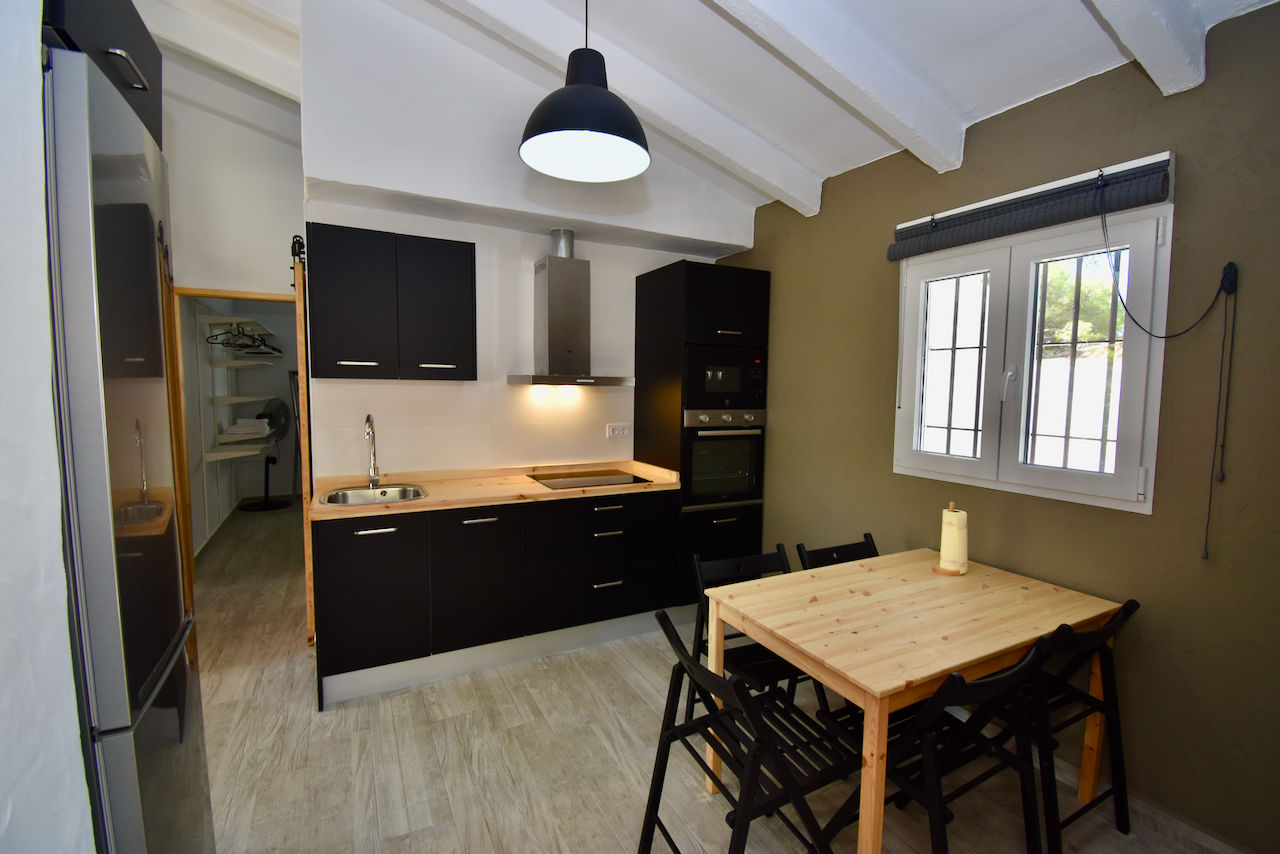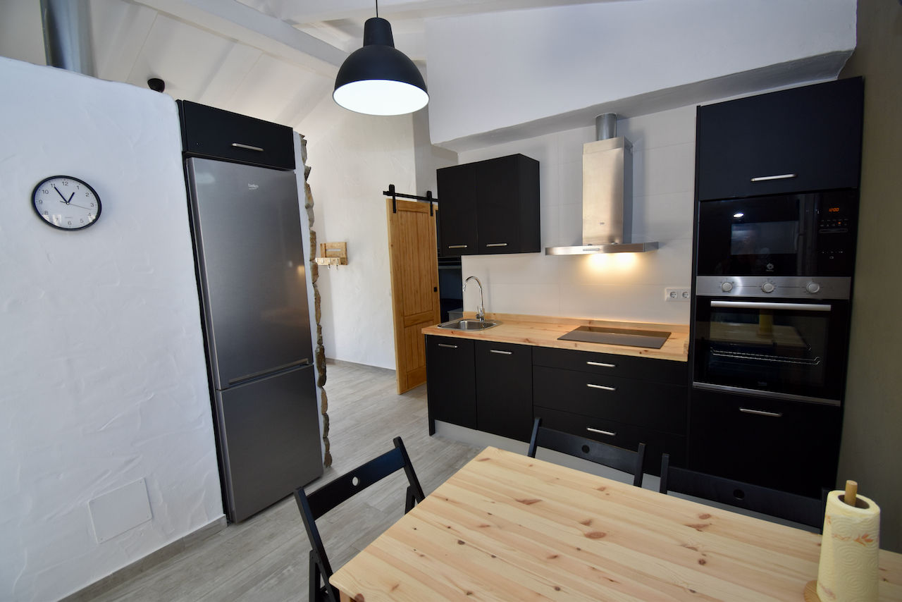 • cocina con cocina eléctrica, horno eléctrico, microondas, refrigerador-congelador, cafetera y tostador