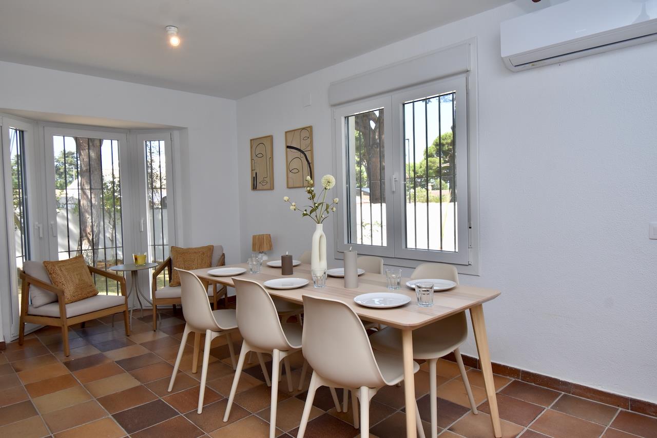 La casa cuenta con 3 dormitorios y 2 cuartos de baño. El alojamiento ofrece mucha privacidad, un hermoso jardín con césped y árboles, así como una encantadora piscina. Su comodidad y la proximidad a la playa, zonas de compras, actividades deportivas, instalaciones de entretenimiento, vida nocturna, lugares de interés y cultura, hacen de esta villa un lugar ideal para pasar sus vacaciones en España con familia o amigos.