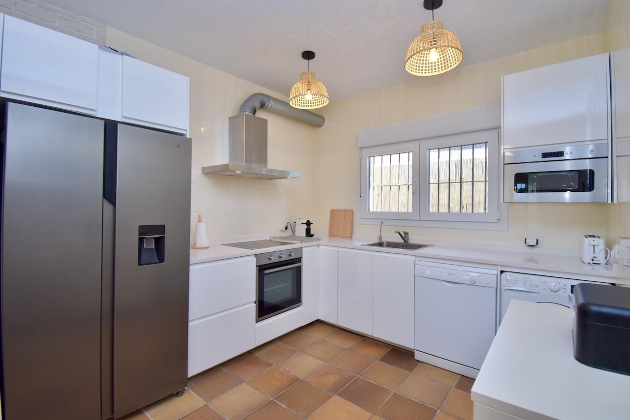 Moderna y cómoda villa en Chiclana de la Frontera, Costa de la Luz, España, con piscina privada para 6 personas. La casa se encuentra en una zona residencial de playa, cerca de restaurantes y bares, tiendas y supermercados, a 3 km de la playa de La Barrosa y a 3 km de La Barrosa.