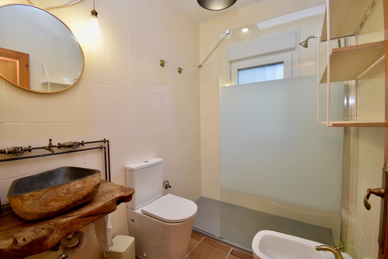• cuarto de baño con lavabo individual, ducha, bidet e inodoro