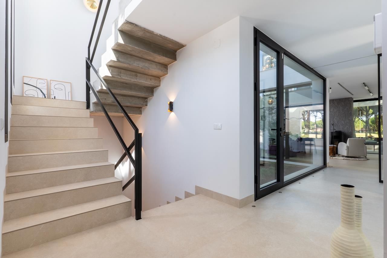 La lujosa villa cuenta con 3 dormitorios y 4 baños, distribuidos en 3 niveles. El alojamiento ofrece mucha privacidad, un maravilloso jardín con césped y grava, una encantadora piscina y vistas impresionantes al campo de golf.