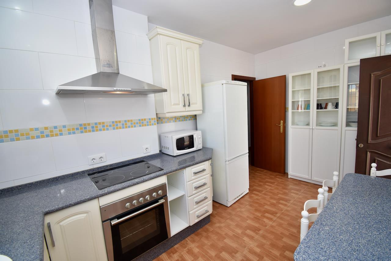 • cocina con placa eléctrica, horno eléctrico, microondas, lavavajillas, frigorífico-congelador, cafetera y tostadora