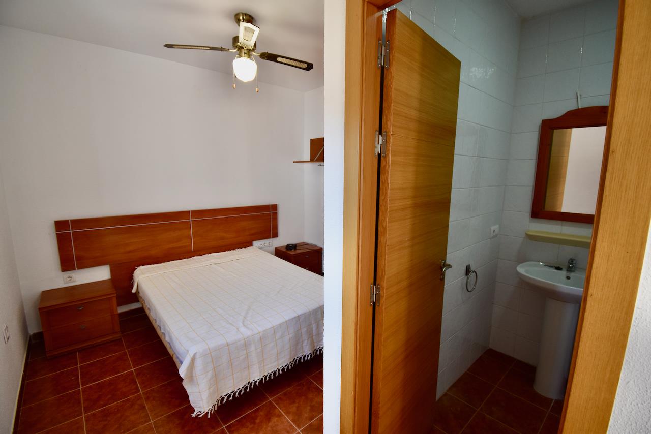 • dormitorio con cama doble (de 190 por 135 cm), cama individual (de 190 por 90 cm), ventilador y baño en suite